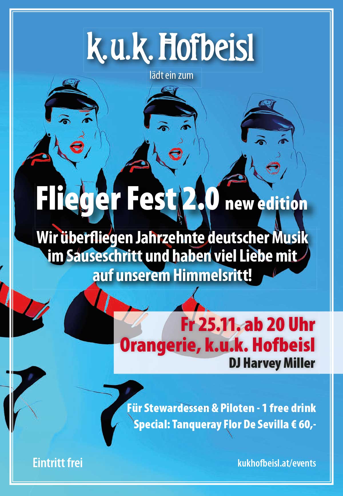 Stewardessen & Piloten, die im entsprechenden Outfit erscheinen, können sich auf einen freien Drink freuen.