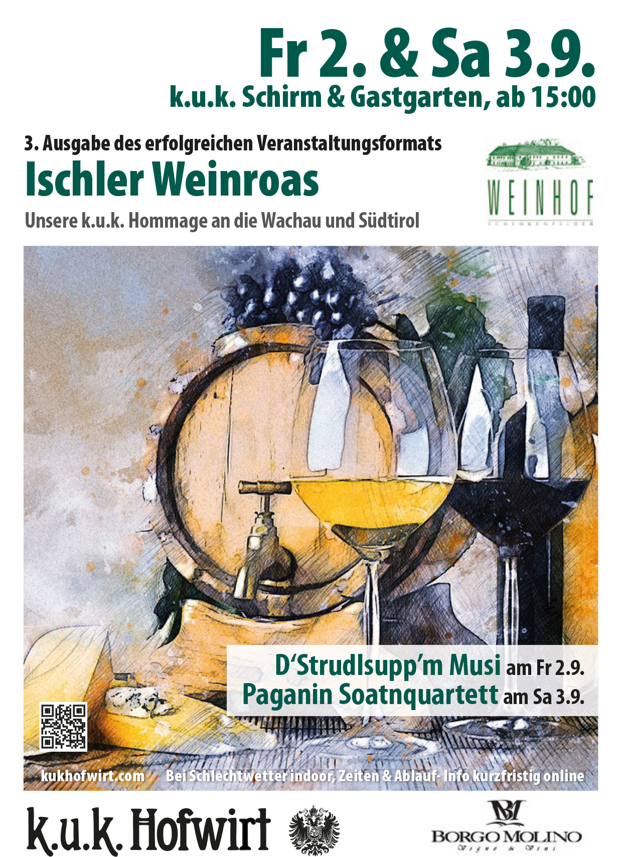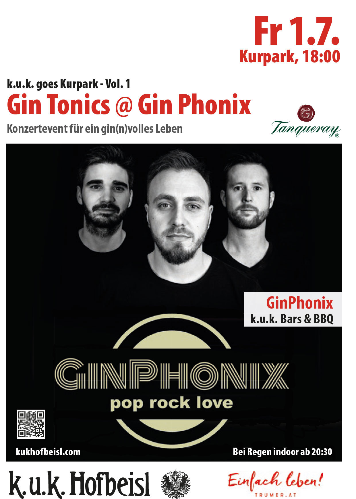 Bei Regen spielen GinPhonix im k.u.k. Hofbeisl indoor ab ca 20h30.
